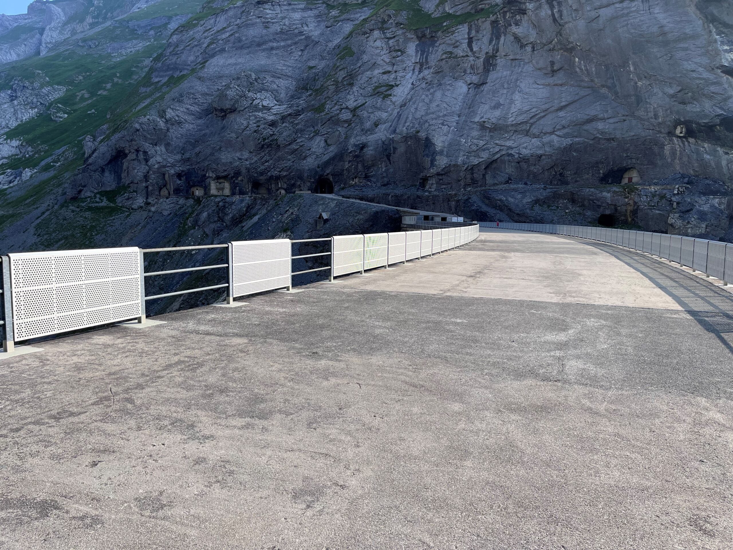 Anbringen von 674 Metern Spezialgeländer aus Lochblechen zur dauerhaften Geländersicherung an der Staumauer.