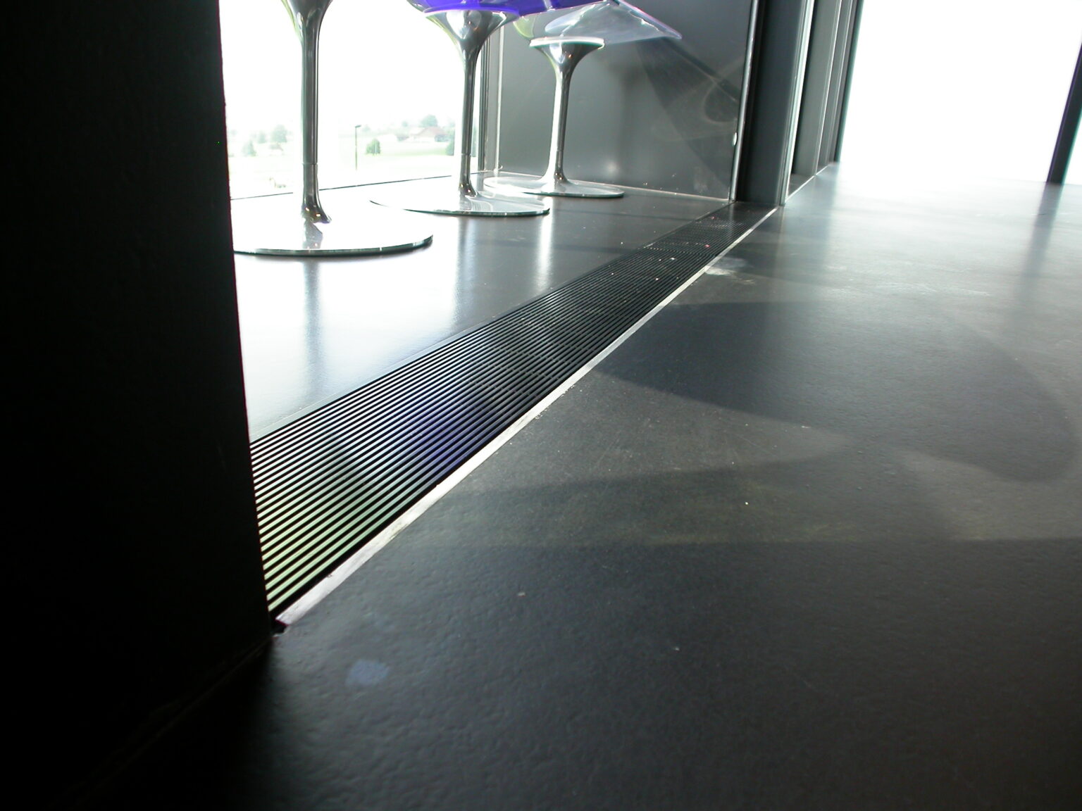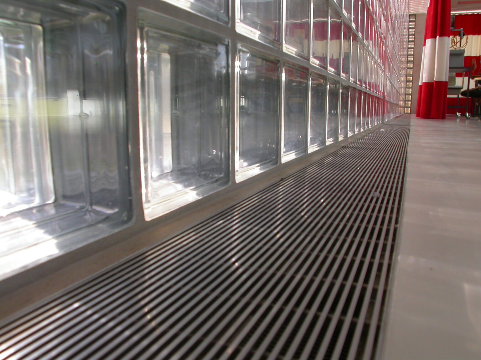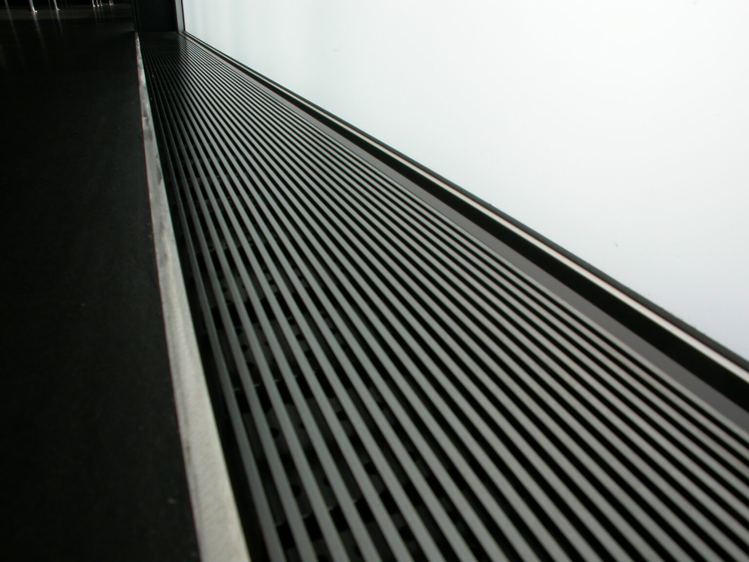 Lineargitter aus Edelstahl, begehbar, Pofil P300 mit Schlitzweite 4mm (57% Durchlass). Einsatz für Zuluft in Bodenkanälen und Abluft im Wandbereich in eckiger und runder Ausführung.