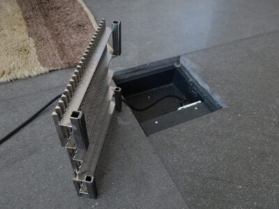 Ersatz von bestehenden geschlossenen Deckeln mit Designgittern inkl. Ausschnitt für Kabelführung.